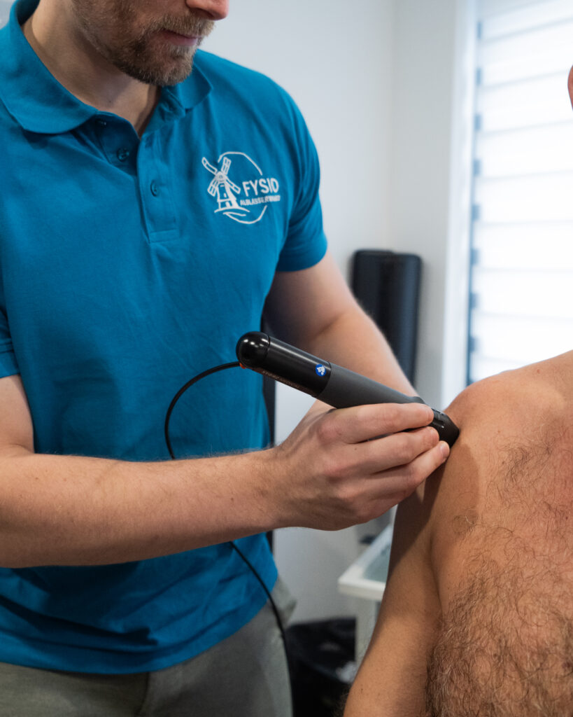 Shockwave therapie gebruikt krachtige geluidsgolven om het herstel van pezen en spieren te stimuleren. De behandeling is geschikt bij klachten zoals hielspoor, tenniselleboog, achillespeesproblemen en kalkafzettingen in de schouder.